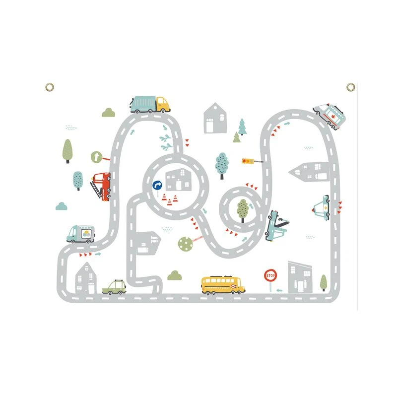 Le kakémono déco MON CIRCUIT accompagne votre enfant dans ses moments de jeux et se veut aussi beau que ludique. Deux œillets métalliques sont ultra-pratiques pour le ranger facilement avant de passer à un autre loisir.