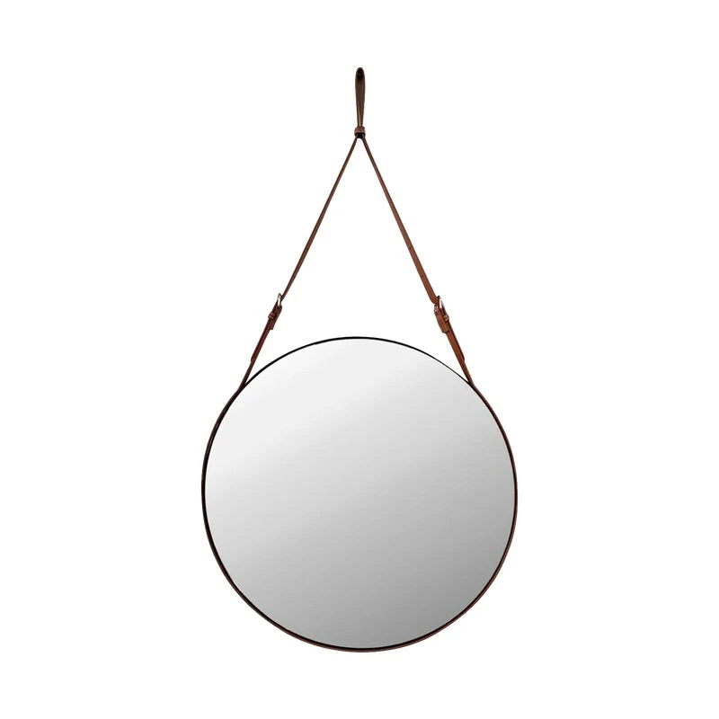 La sangle en simili cuir et le contour métallique donnent à ce miroir rond des allures rétro. Mais cela ne l’empêche pas de s’inscrire dans une déco intemporelle, chic ou maison de campagne.