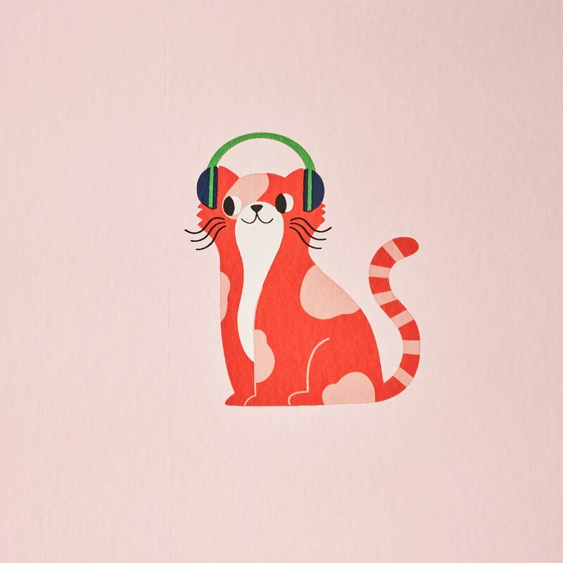 Un autre chat se tient bien à quatre pattes, mais chacune d’elles est chaussée d’un patin à roulettes, ce qui n’a pas l’air de gêner l’animal. En dessous de lui, un congénère se tient bien tranquillement assis et écoute la musique provenant du casque qu’il porte sur les oreilles. Écoute-t-il Les sardines ? Peut-être que son voisin, qui est en train de faire du hula hoop en justaucorps le sait !