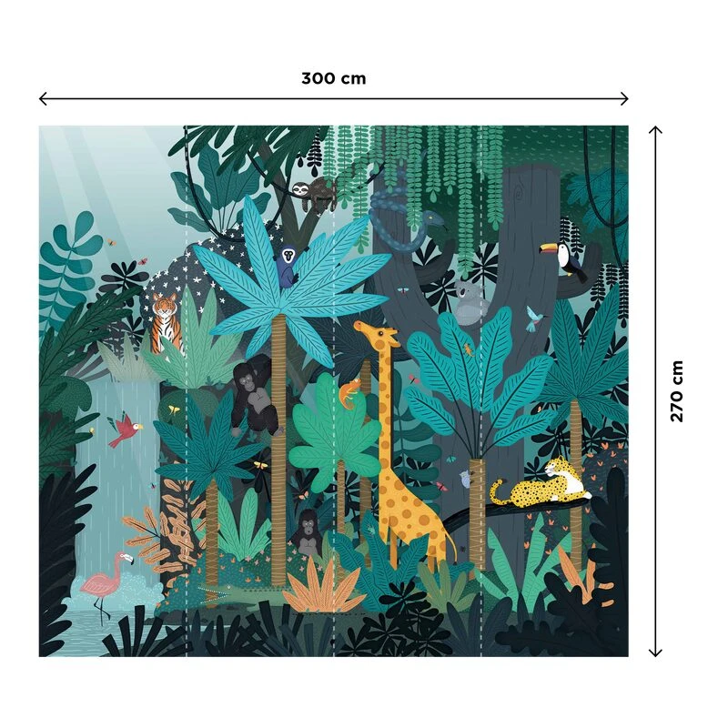 Tel Mowgli votre petit d’homme aurait pu naître dans la jungle au milieu des animaux ? Créez cet univers enchanteur et sauvage dans la chambre de votre enfant avec le décor mural panoramique FUN JUNGLE.