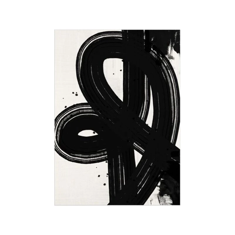 Cette image encadrée en toile et MDF représente des mouvements de pinceau laissant de la peinture noire sur un fond clair, un peu comme si le peintre était arrivé devant sa toile, s’était gratté le menton puis avait peint un zigouigoui avant d’aller prendre son déjeuner.