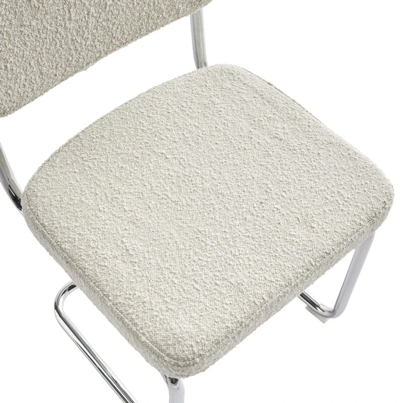 Cette chaise de salle à manger ou de cuisine mélange avec aisance le fer et la bouclette. Les pieds tubulaires et métalliques supportent une assise et un dossier ultra cosy grâce au revêtement bouclette. C’est ainsi que la chaise NOLAN trouvera sa place dans votre pièce au style rétro ou moderne.