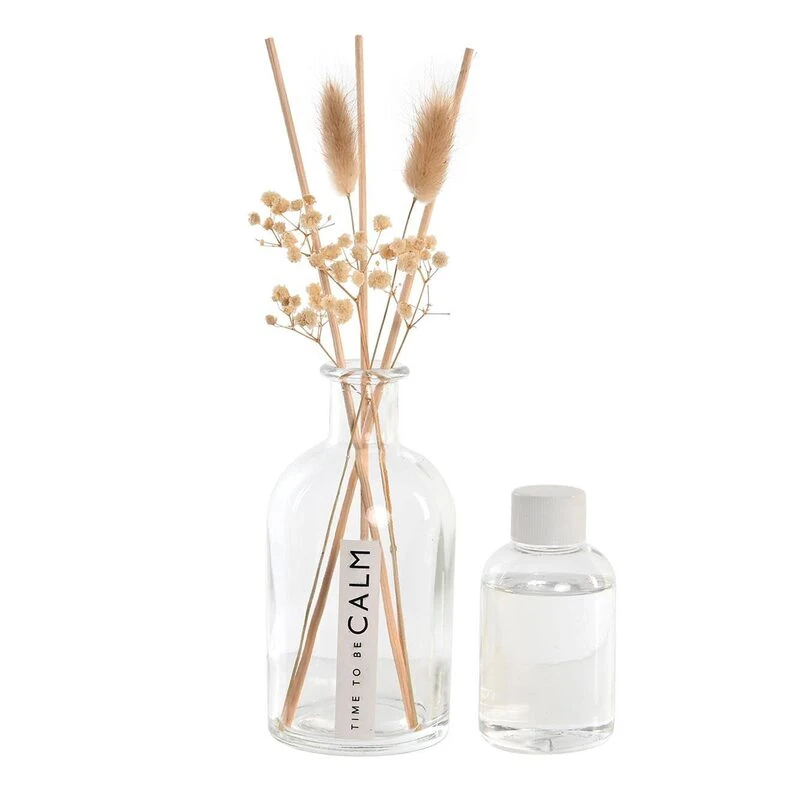 Le diffuseur CALM, d’une hauteur de 25 centimètres, repose avec grâce dans un ravissant pot en verre, s’érigeant ainsi en pièce maîtresse sur votre buffet de salon, une étagère ou une console. Laissez-vous séduire par son parfum léger et envoûtant qui embaumera avec finesse chacun des espaces de votre domicile.