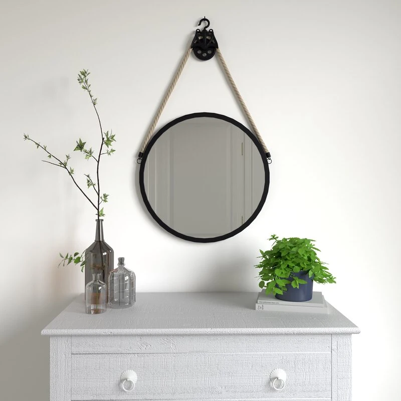 Habillez vos murs avec le miroir JOAQUIN ! Sa forme ovale et son pourtour noir apporteront de l’originalité et de la modernité dans une déco casual. Sa poulie métallique lui confère un look industriel et vintage à la fois.