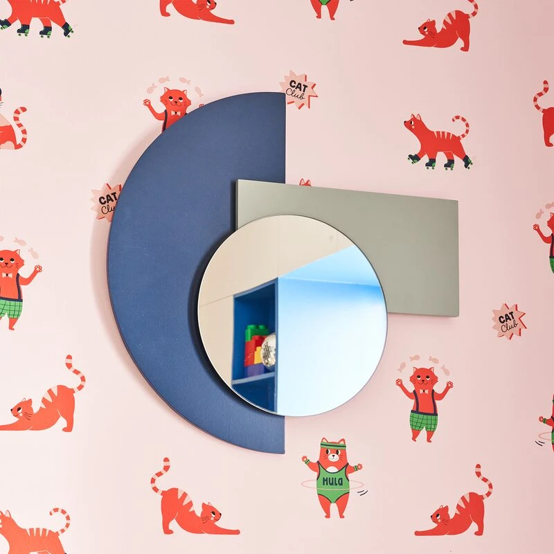 Un demi-cercle bleu, un rectangle vert menthe à l’eau et un miroir circulaire se superposent comme un jeu de gommettes. C’est cette composition qui donne à la décoration murale POSITIF toute sa singularité. Ce miroir peut s’accrocher aussi bien dans une entrée, que dans la chambre d’un enfant ou encore dans un salon. Il est parfait dans une décoration urbaine, design ou encore moderne.