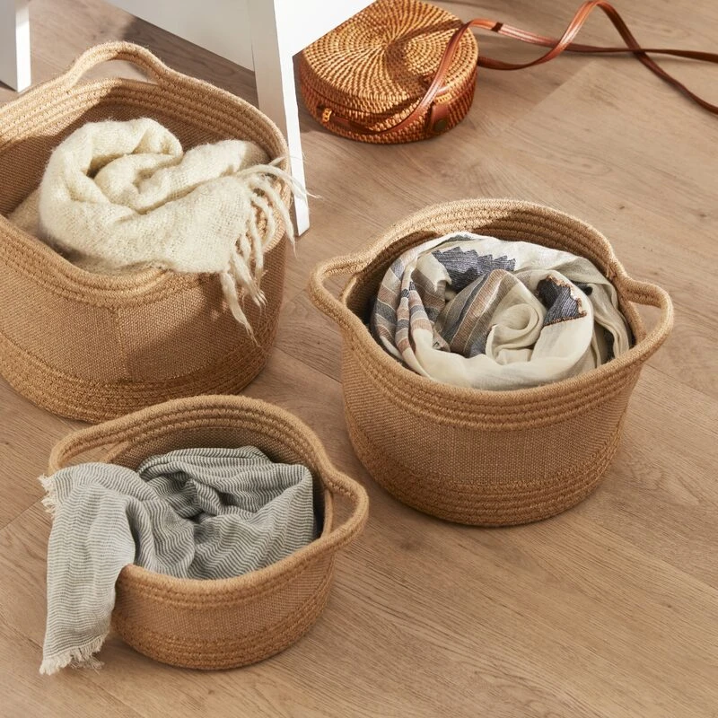 Adoptez ce lot de trois paniers GEREON, parfait pour l’organisation de votre intérieur. Fabriqués en jute, ces paniers tissés à la main, trouveront aisément leur place chez vous, en plus d’être de superbes éléments de décoration, ils sont idéals pour ranger des petits objets et accessoires. Vous pouvez combiner ces paniers avec un mobilier en bois, et une décoration végétale pour créer une ambiance chaleureuse chez vous.