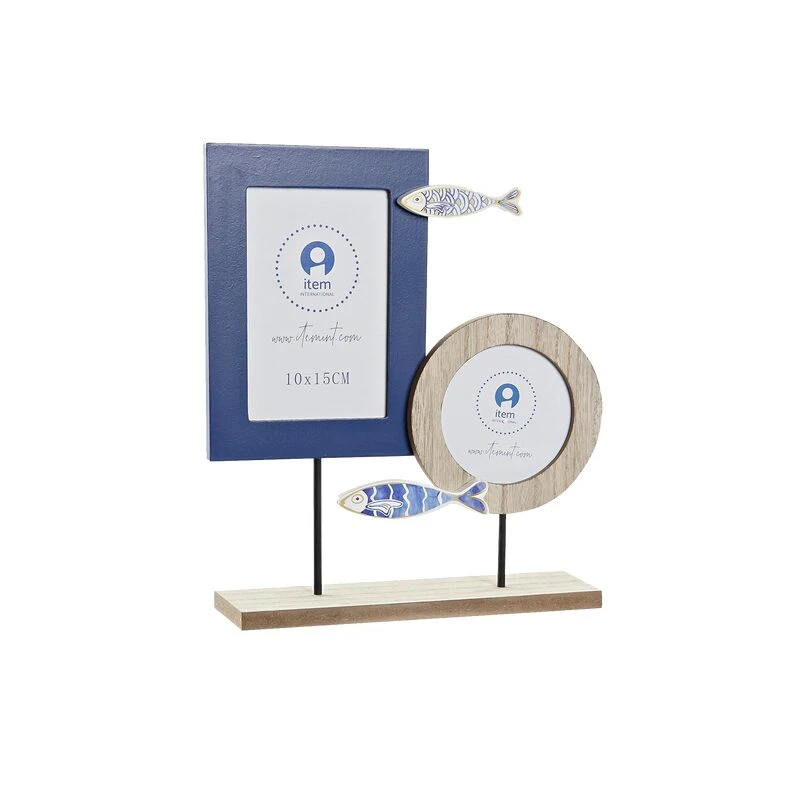 En effet, le pêle-mêle GRANVILLE se compose de deux cadres de tailles et de formes différentes fixés sur un socle rectangulaire. Ce pêle-mêle en bois est agrémenté de deux poissons bleu et blanc qui lui donnent un petit côté vacances en bord de mer.