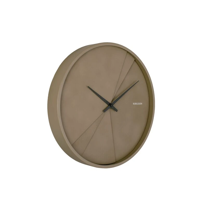 En effet, cette horloge possède un design épuré qui la rend très contemporaine. De couleur kaki, elle affiche un look élégant qui lui est donné par la texture satinée de son cadran. Celui-ci présente un relief produit par les lignes qui le traversent, conférant à l’ensemble un style original, comme si cet objet était le résultat d’une séance d’origami.