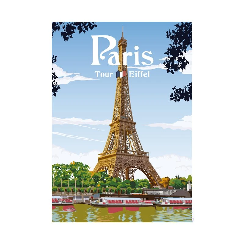Plongez dans l’atmosphère magique de la Ville Lumière avec l’affiche PARIS proposée par l’entreprise française Printymania. La majestueuse Tour Eiffel, les charmants quais de la Seine et quelques bateaux amarrés représentent ici parfaitement l’épicentre de la capitale. Avec sa couleur particulière, la Dame de Fer se démarque fièrement sur le bleu du ciel, créant une scène à la fois emblématique et poétique.