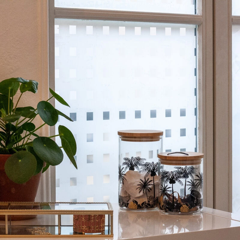 Optez pour ce revêtement adhésif vitrostatique afin d’apporter un nouveau look à vos fenêtres. Il protège également les objets des blanchiments liés aux UV, mais aussi votre peau des rayons UVA. Facile à poser et réutilisable, ce film ne laisse aucune trace sur vos vitrages une fois retiré. Ainsi, personnaliser votre intérieur et créer une déco sur vos vitres devient un jeu d’enfant ! Son design géométrique donné par les multiples carrés apportera une touche moderne à votre intérieur, tout en vous protégeant des regards indiscrets.