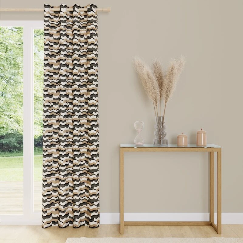 Ses nuances chaudes réchauffent votre atmosphère et son esprit graphique apporte de l’originalité et du pep’s à votre pièce. Dans une ambiance scandinave, le rideau AKITA rehausse le décor d’une charmante note art déco et rétro, façon années 70.
