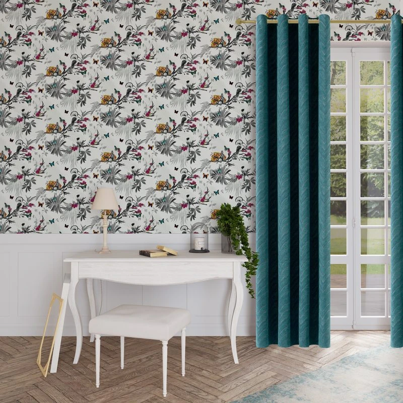 Optez pour ce ravissant rideau NOYA au coloris intense bleu paon. Les détails présents sur son tissu feront de lui un élément tout aussi pratique, qu’esthétique ! Voilà un modèle très chic qui s’invitera parfaitement dans votre intérieur et rehaussera votre déco.