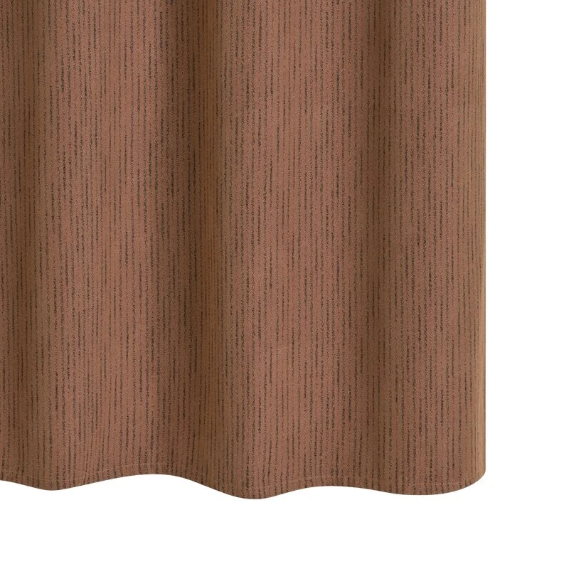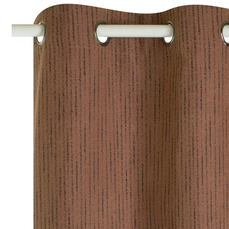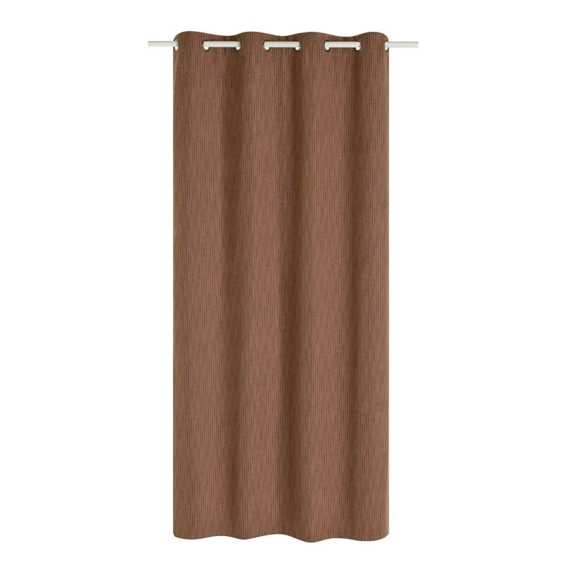 C’est d’abord sa couleur qui provoque cette sensation. En effet, la teinte écorce de ce rideau de 140 par 260 centimètres lui confère une dimension très chaleureuse, accentuée par sa matière.