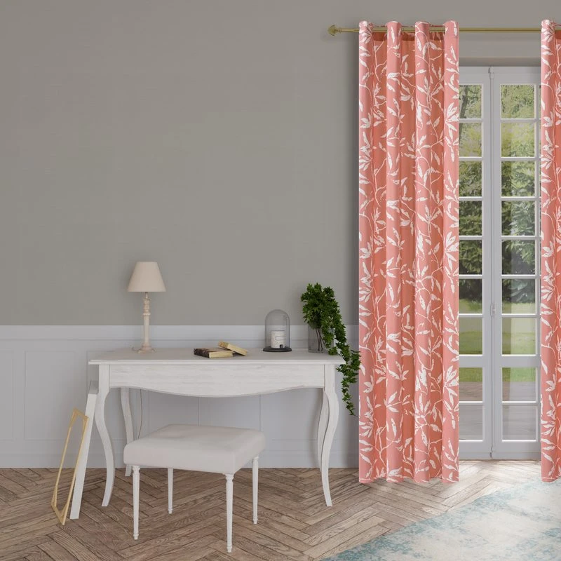 Craquez pour ce joli rideau SUREAU habillé de motifs feuilles de sureau. Avec une dominante de couleur rose blush et blanche, ce modèle romantique et très élégant parera vos fenêtres de manière originale et colorée.