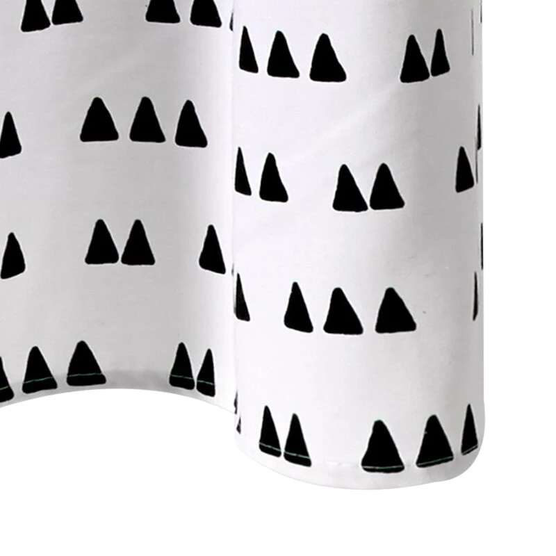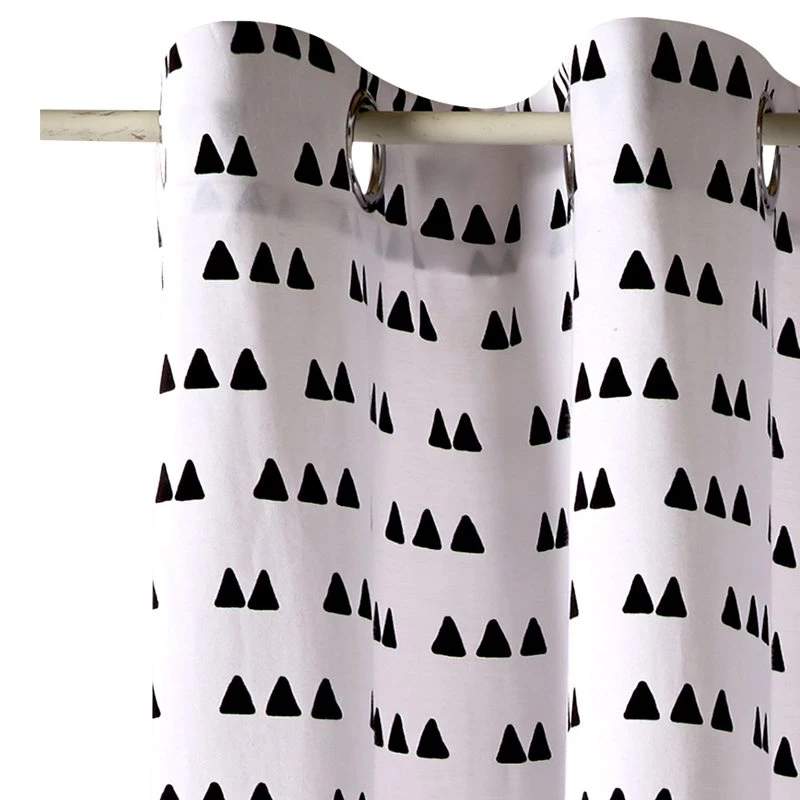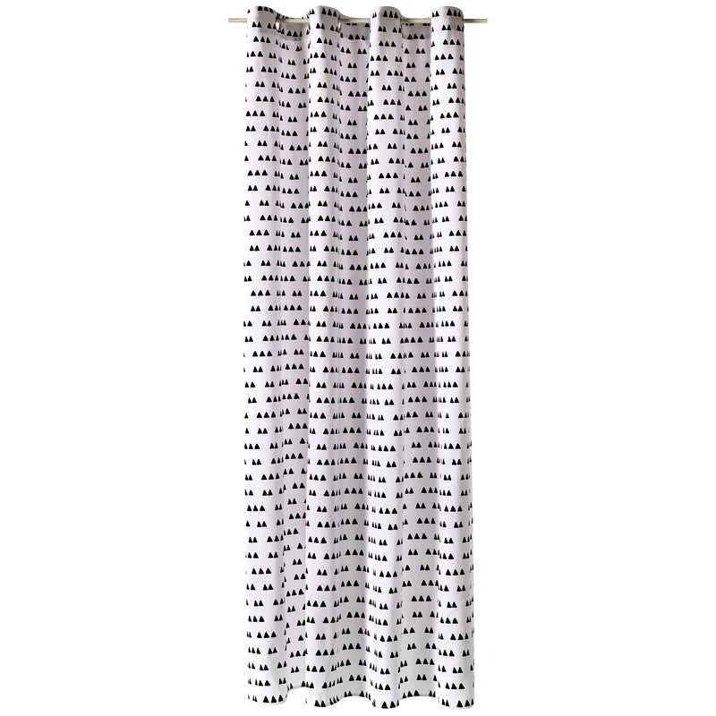 De petits triangles au tracé naïf pare le tissu de toile, dans un contraste de noir et de blanc. Un brin régressif, ce rideau est parfait pour créer une ambiance vintage, empreinte d’une douce nostalgie.