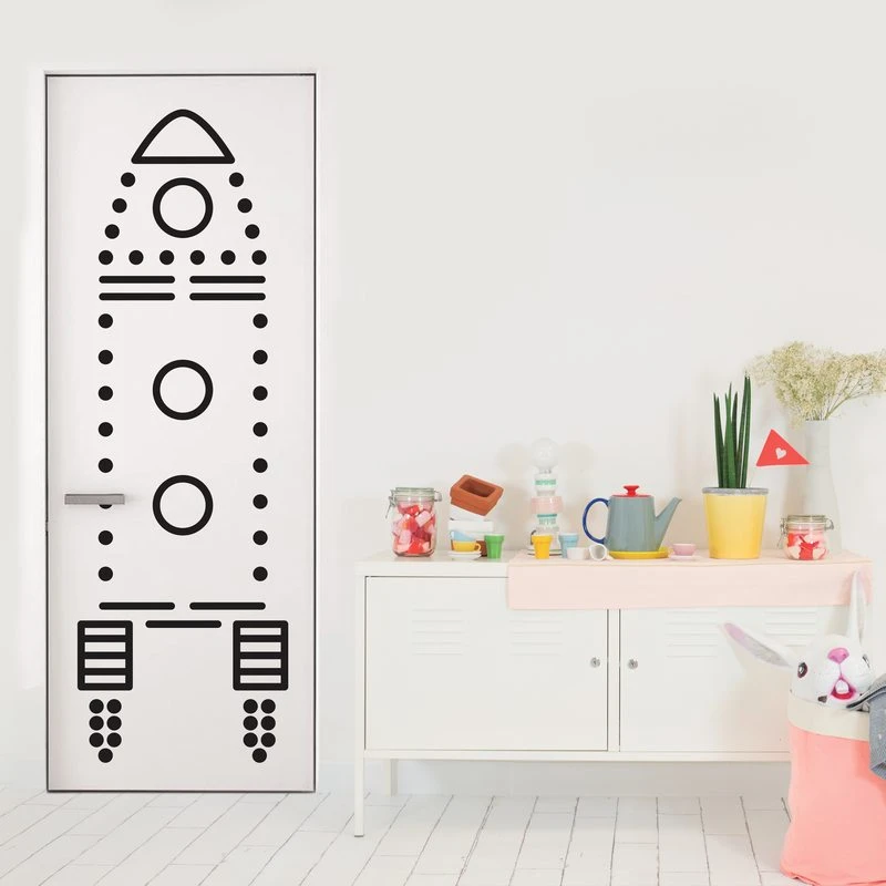 Ce sticker de porte en forme de fusée en pointillé fait effet en journée, mais illumine votre nuit grâce à sa phosphorescence.