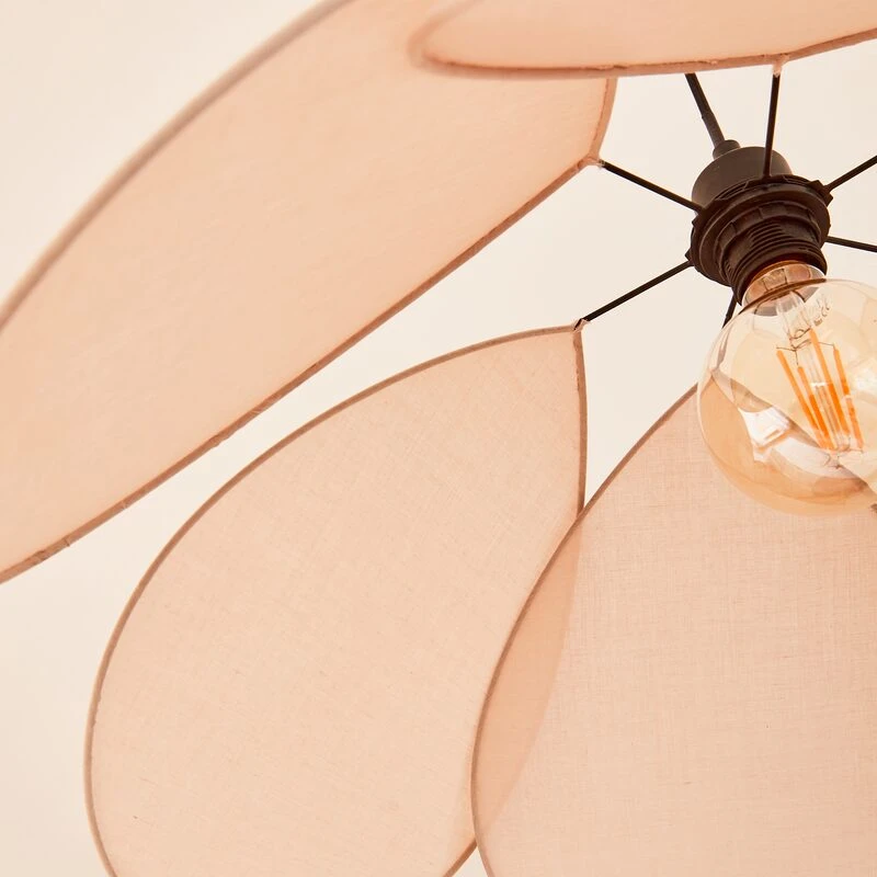 Adoptez cette jolie suspension ELA, parfaite pour agrémenter vos pièces d’une lumière douce et diffuse ! Ses palmes en forme de pétales au coloris rose pâle sont idéales pour un effet épuré. Cette suspension pliable est dotée d’une structure en métal qui lui apporte de la modernité et d’un abat-jour en tissu rose, qui ajoutera une touche romantique à votre intérieur.