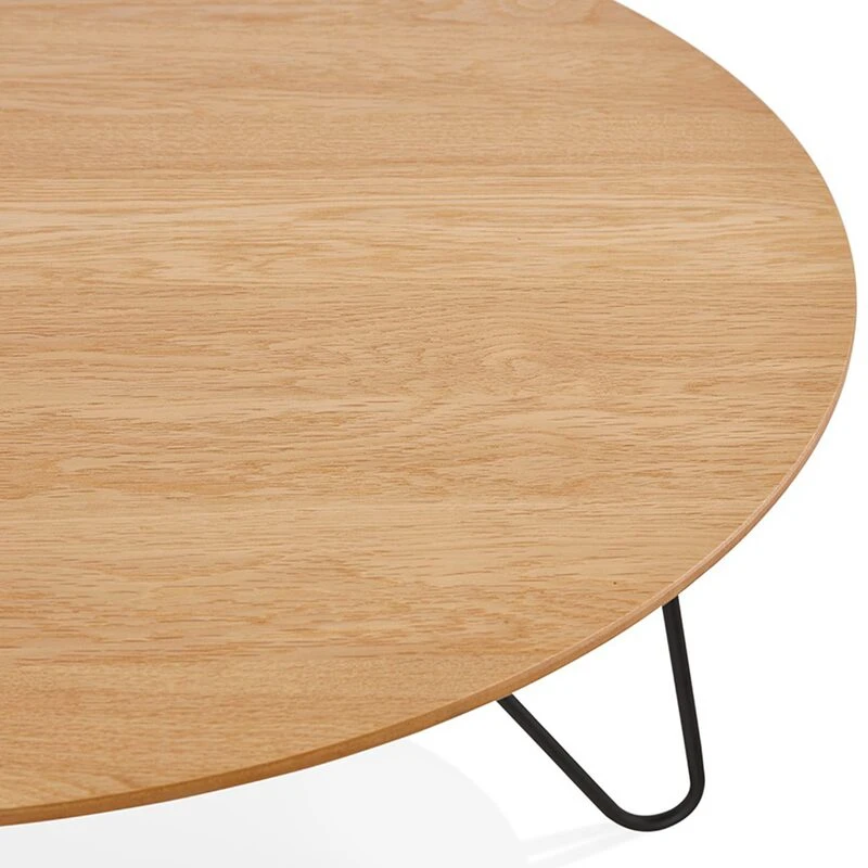 Le plateau de cette table basse à monter soi-même est composé de MDF plaqué chêne, et son piétement est réalisé en fer noir thermolaqué.