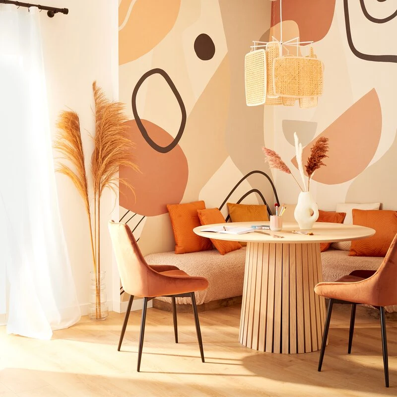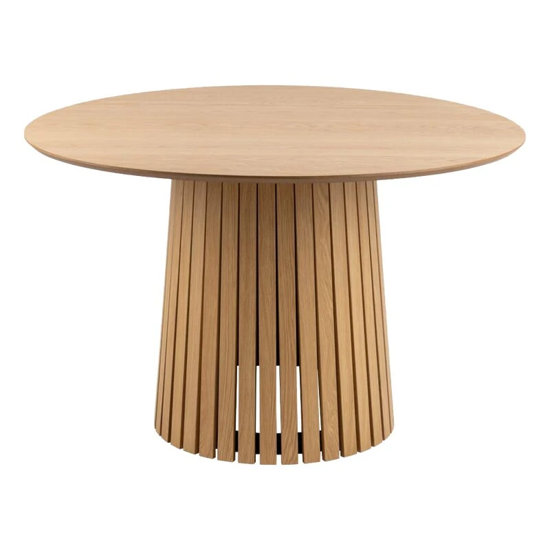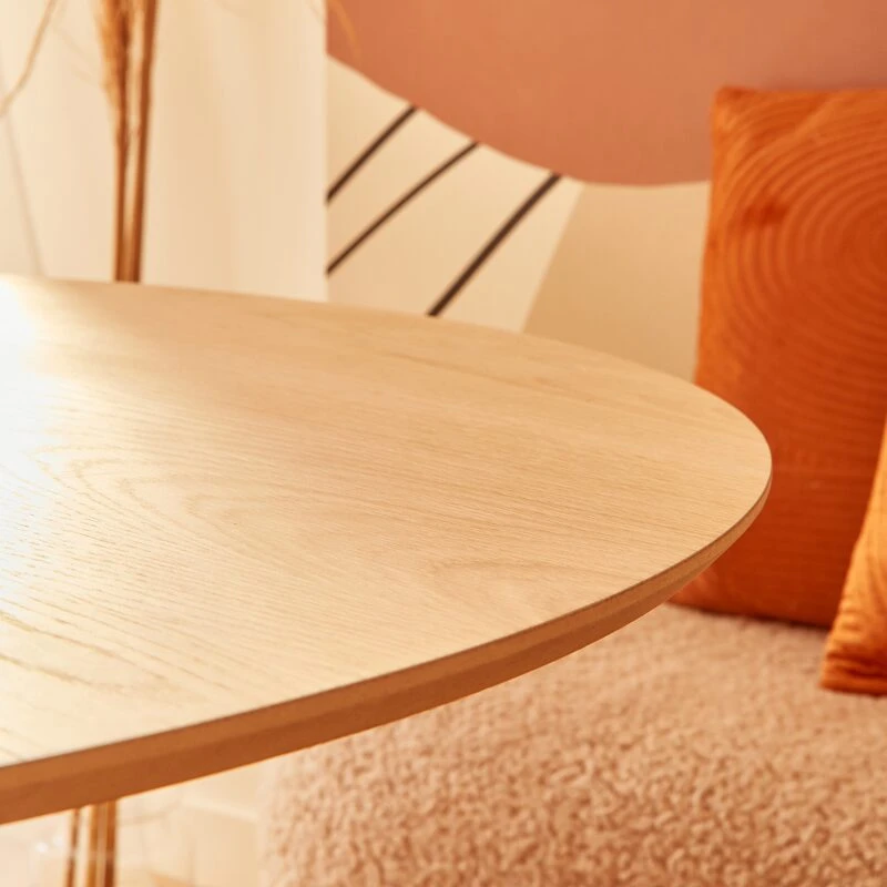 Son look scandinave associé à sa teinte couleur chêne et à ses charmantes lignes arrondies s’intègre à merveille dans un intérieur minimaliste, bohème ou ethnique. Son large pied central, composé de petites lames de bois, lui offre une vraie singularité qui rend votre déco unique.
