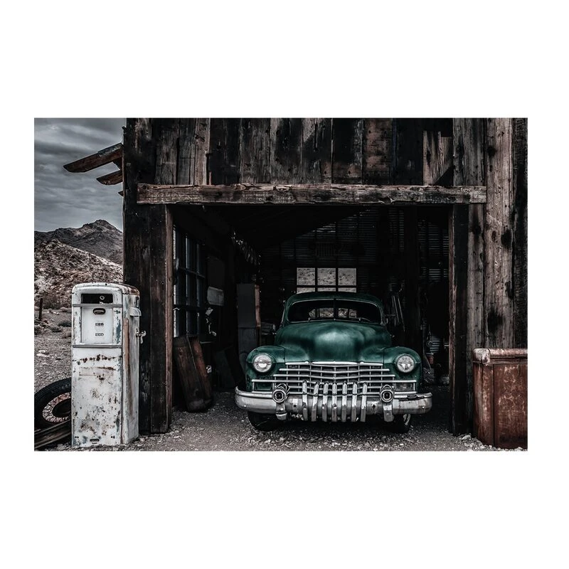 L’american way of life s’installe dans votre intérieur avec le tableau en verre GREEN CAR. Une vieille voiture américaine, garée dans une vieille grange en bois devant laquelle trône une vieille pompe à essence rouillée : il n’en faut pas davantage pour être transporté sur le continent américain.