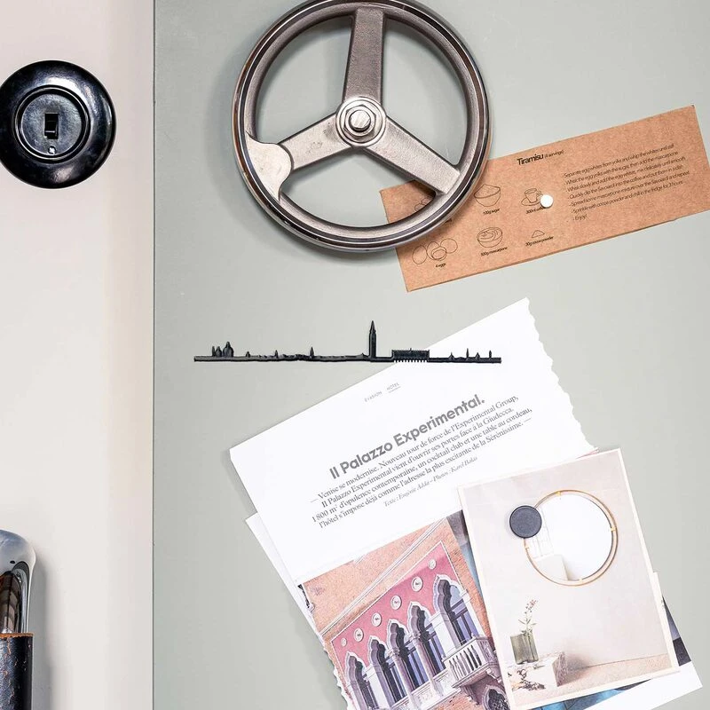 Parce que THELINE VENICE MINI est une pièce décorative aimantée, vous pourrez l’accrocher très facilement sur la porte de votre réfrigérateur ou sur tout autre support métallique.