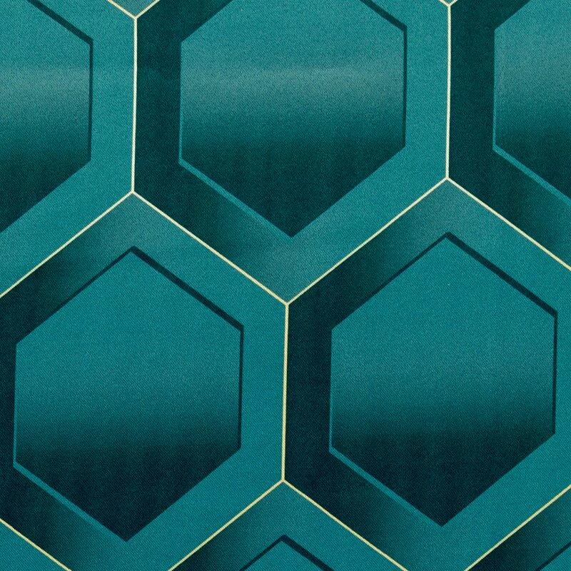 Ce tissu arbore une ravissante couleur bleu paon qui apportera une touche profonde à n’importe quel espace. Son motif représente une multitude d’hexagones qui lui ajoutent une touche géométrique très intéressante visuellement. De plus, les formes imprimées possèdent un effet dégradé créant des ombres, ce qui accentue son aspect trompe-l’œil.