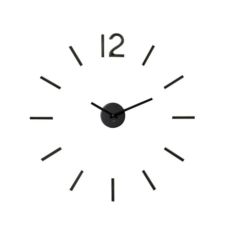 Les indicateurs de temps métalliques se fixent individuellement au murs grâce ç un adhésif facile à coller, et le mécanisme se monte avec une vis ou un clou.