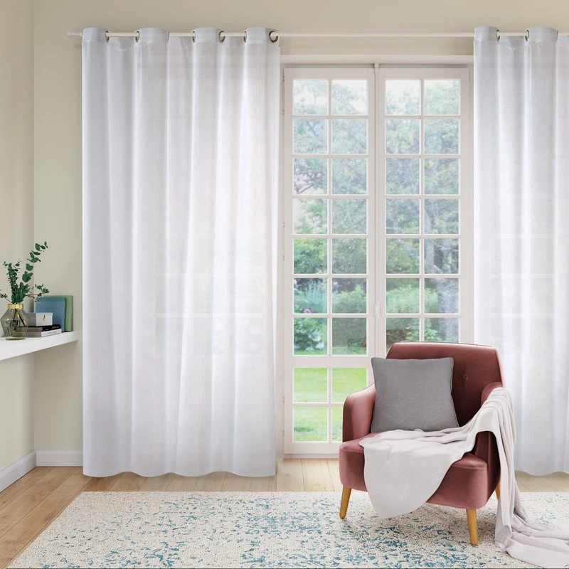 Ce voilage FILAMENT en étamine brodée, légèrement opaque et vaporeux, tamisera la lumière de votre pièce tout en douceur.