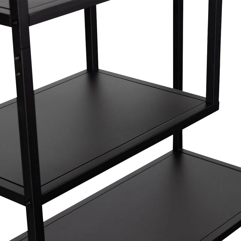 Cette étagère en métal recouverte de poudre noire s’inscrit dans une déco chic et intemporelle. On la verrait bien également dans un intérieur design ou industriel. Fixez-la contre un mur blanc ou de couleur vive pour faire ressortir sa teinte sombre et élégante. Utilisez-la comme séparateur de pièce, pour délimiter une entrée d’un salon par exemple (voir les conseils d’installation ci-après).