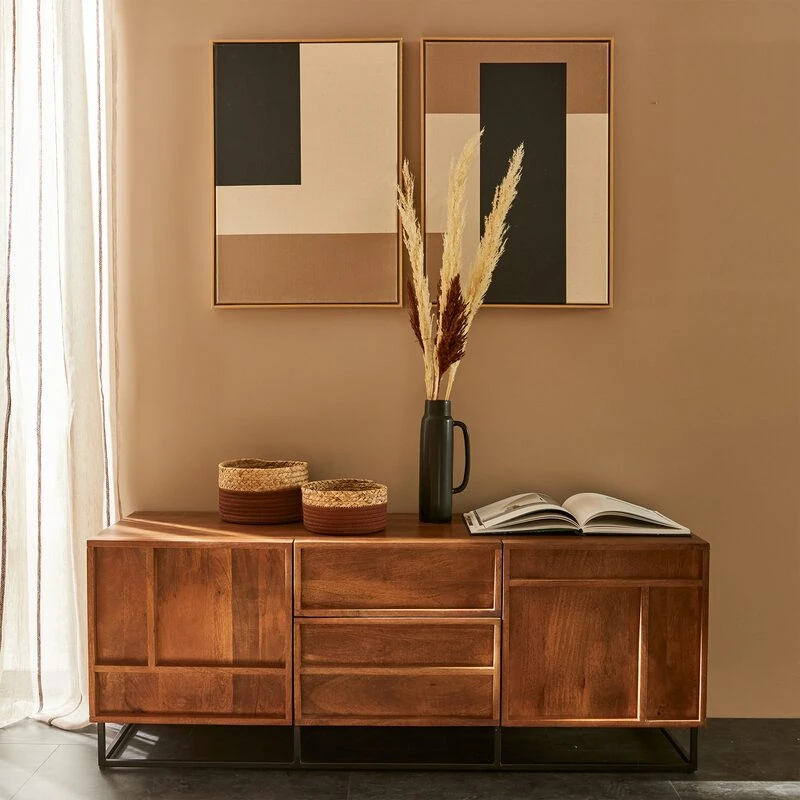 Le bois de manguier du meuble TV FORREST est idéal pour une décoration épurée et moderne.